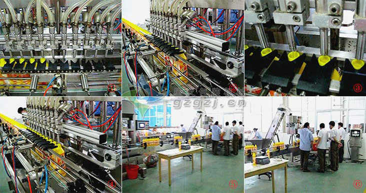 多頭膏體自動灌裝生產(chǎn)線工作流程:①移瓶 ②卡瓶 ③灌裝 ④松卡移瓶 ⑤旋蓋貼標(biāo) ⑥裝箱。 邢臺自動包裝機(jī)械客戶: